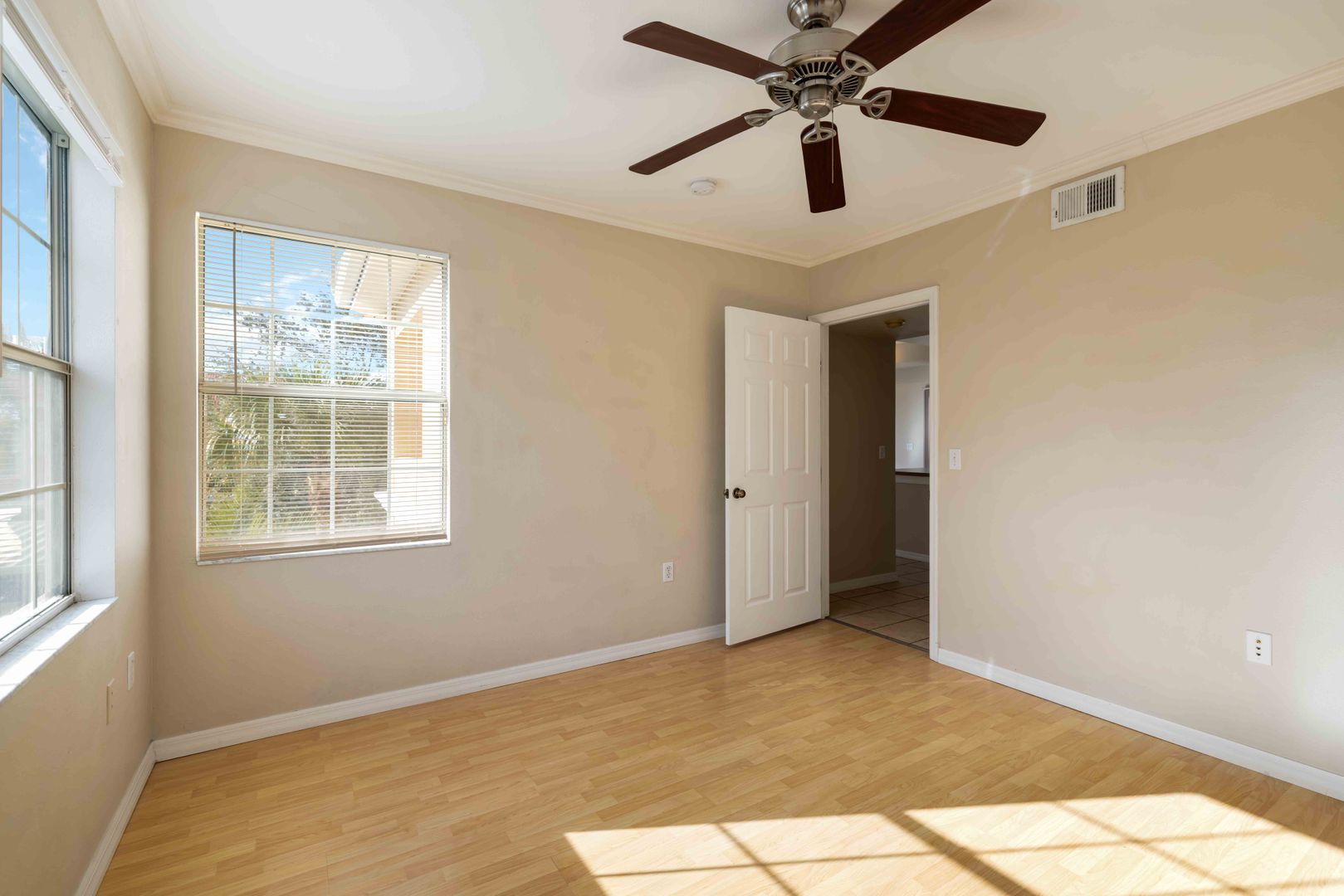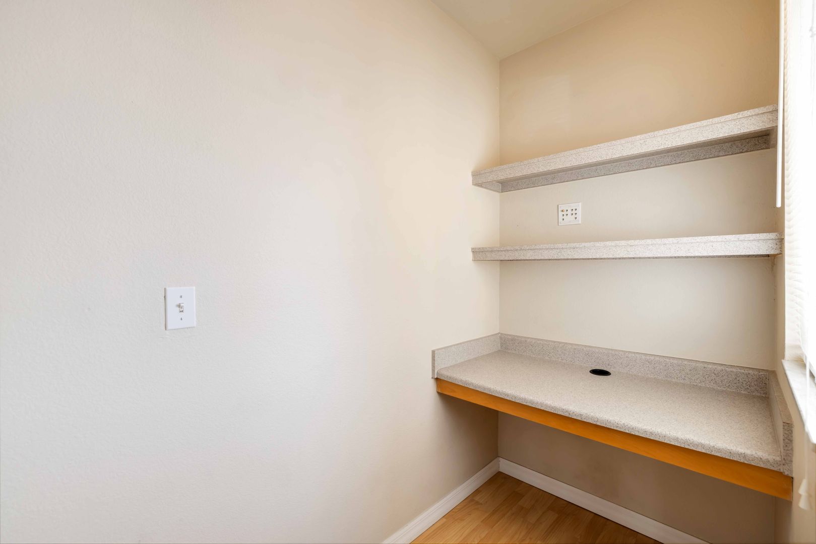 This 2/2 unit is available now for an annual lease. The unit is located on the second floor and comes with its own entrance/staircase. The home features a comfortable living/dining room area with high ceilings and an open kitchen with breakfast bar. The primary bedroom has a generous walk-in closet and an ensuite bathroom. The second bedroom is located on the other side of the unit, providing ample closet space and privacy. The unit has laminated flooring throughout, except in the bathrooms and kitchen area. A designated office nook plus a laundry closet with your own washer and dryer finish the home off.